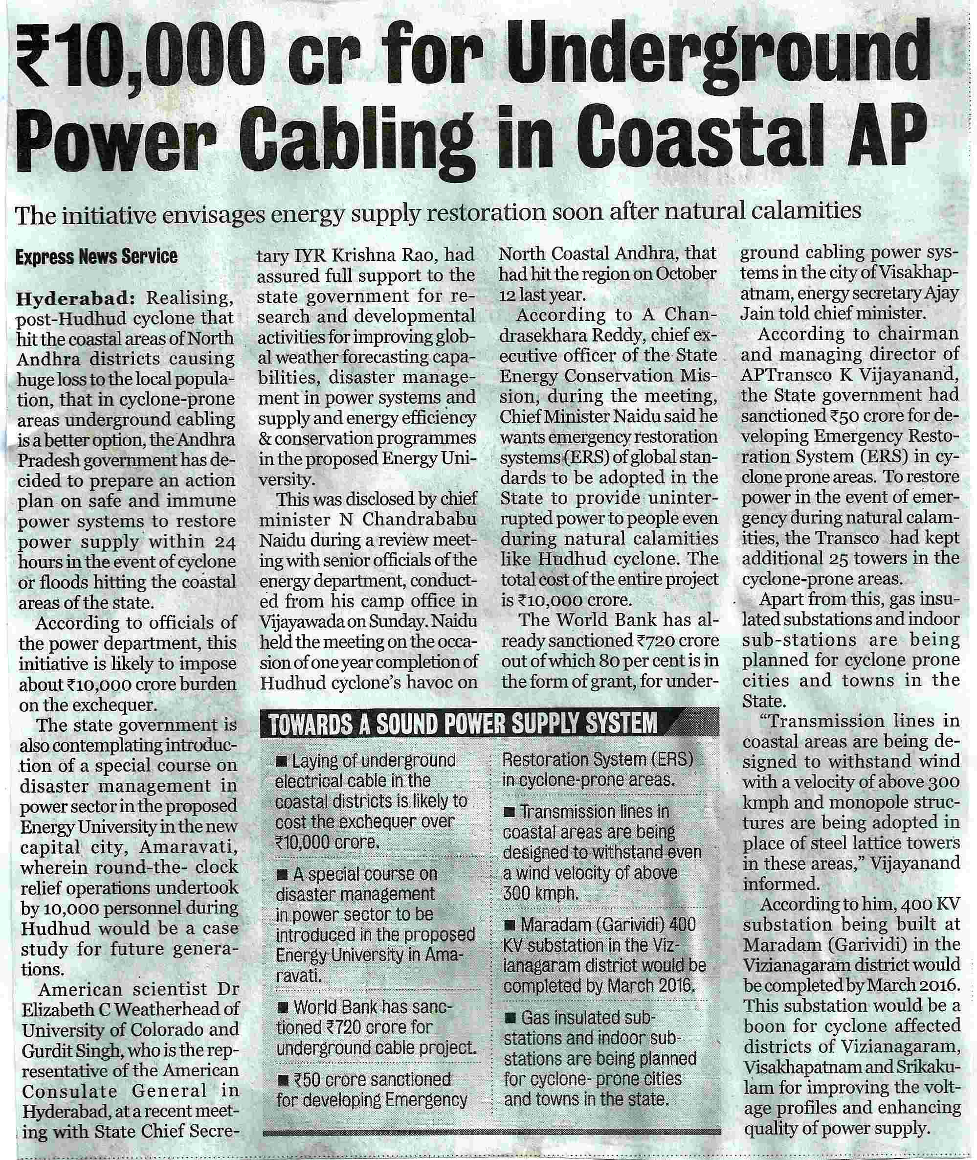 10,000 cr for Underground Cabling in Coastal AP