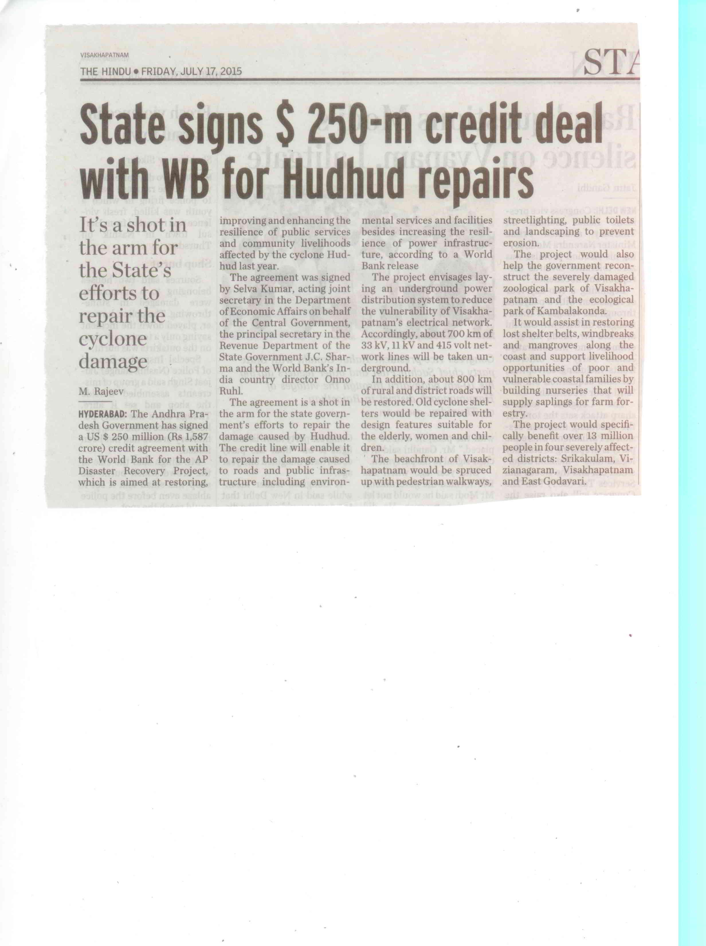 State signs $250-m credit deal with world bank for hudhud repairs
