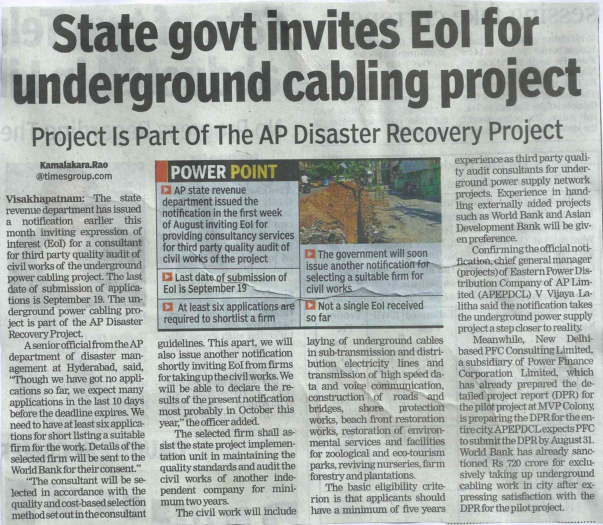 State Gov Invites For Underground Cabling Project